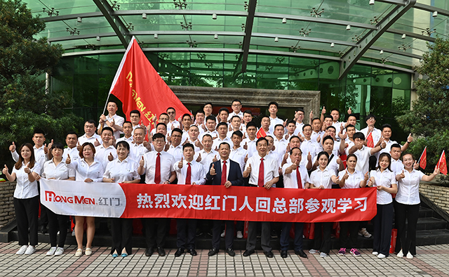 公司为远道而来的红门家人举行了盛大的欢迎仪式,大家身着红门统一工服,热烈欢迎各位红门人的到来。红门董事长余家红先生、总裁何菲先生、副总裁余德君先生、副总裁魏承榜先生、副总裁涂选明先生携公司员工共同迎接他们的到来。