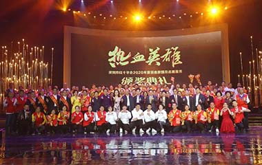 12月27日下午,“热血英雄”——深圳市红十字会2020年度捐血献髓及志愿服务颁奖典礼在深圳广电集团1800演播厅圆满举办,捐血献髓及志愿服务的优良代表出席活动并接受表彰。深圳市人民政府副秘书长刘昂、市卫生健康委员会副主任吕光华、深圳市红十字会专职副会长兼秘书长张英姬、深圳市红十字会副秘书长王元彬、深圳市血液中心主任朱为刚、深圳市血液中心书记卢亮、深圳市血液中心副主任刘晋洪、深圳市宝安区中心血站站长张胜、深圳市宝安区中心血站副站长陈健聪、深圳市龙岗区中心血站副站长容莹等领导出席了本次活动。